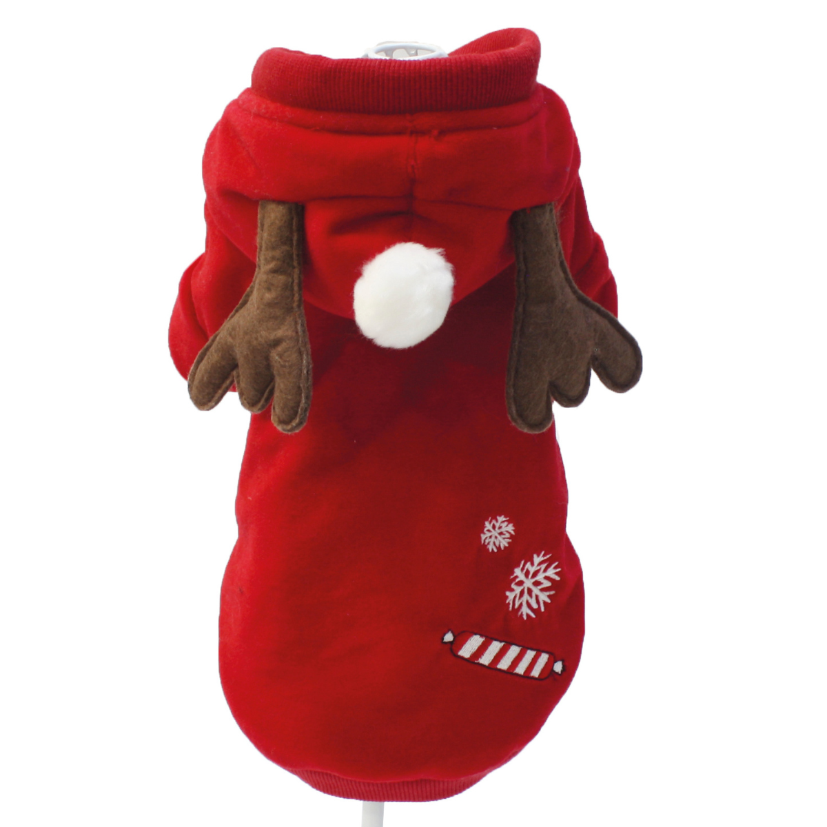 Совршен аксесоар за Новогодишните празници за твоето милениче. Мек велвет дуксер со капуљача на која има рогови и пом пом топче.
