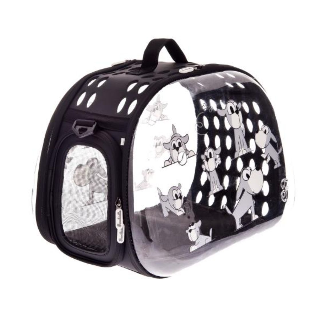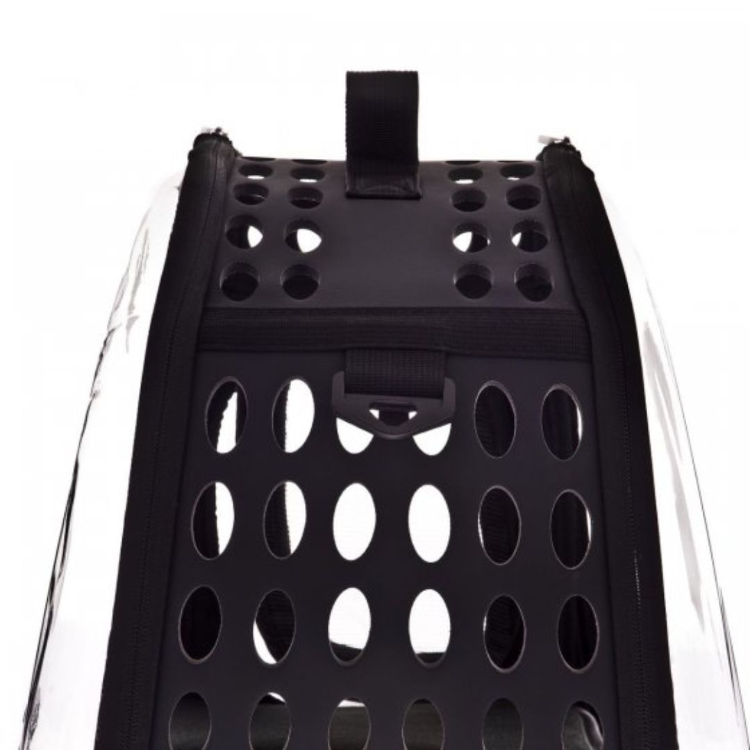 Ferribiella Hard Case е цврст, транспарентен транспортер за мали кучиња и мачки, дизајниран за сигурно, удобно и практично носење на твојот миленик при патувања, посети кај ветеринар или секојдневни обврски. Транспартерот има транспарентни страни што им овозможуваат на милениците да гледаат надвор за време на патувањето, што може да им помогне да се чувствуваат поспокојно и помалку анксиозно.Супер практичен и функционален, се отвора целосно од напред и од страните за лесен пристап и удобен влез/излез на миленикот. Флексибилен материјал EVA + пластика кој е траен, лесен за чистење и отпорен на употреба. Внатрешниот подлогa (креветче) може да се отстрани и се мие, што ја олеснува хигиената и комфорот на твојот миленик.Отворите за воздух и мрежести делови обезбедуваат добра циркулација на воздухот и го намалуваат стресот кај милениците за време на патот.