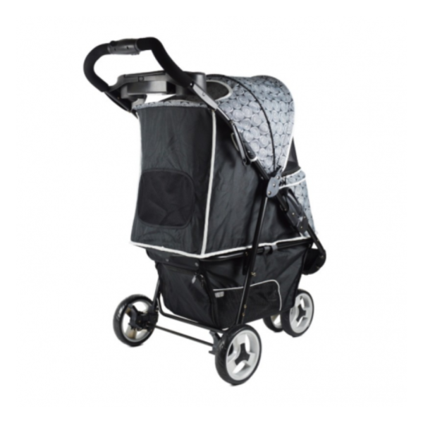 Има заштита и комфор за милениците со вграден сунцобран/капаче што го штити миленикот од директна сончева светлина и мрежести странични панели за подобра вентилација и свеж воздух. Практичен дизајн за сопственикот со простор за носечки предмети/мали работи за време на прошетка. Дополнително, лесно се склопува и расклопува кога не се користи.