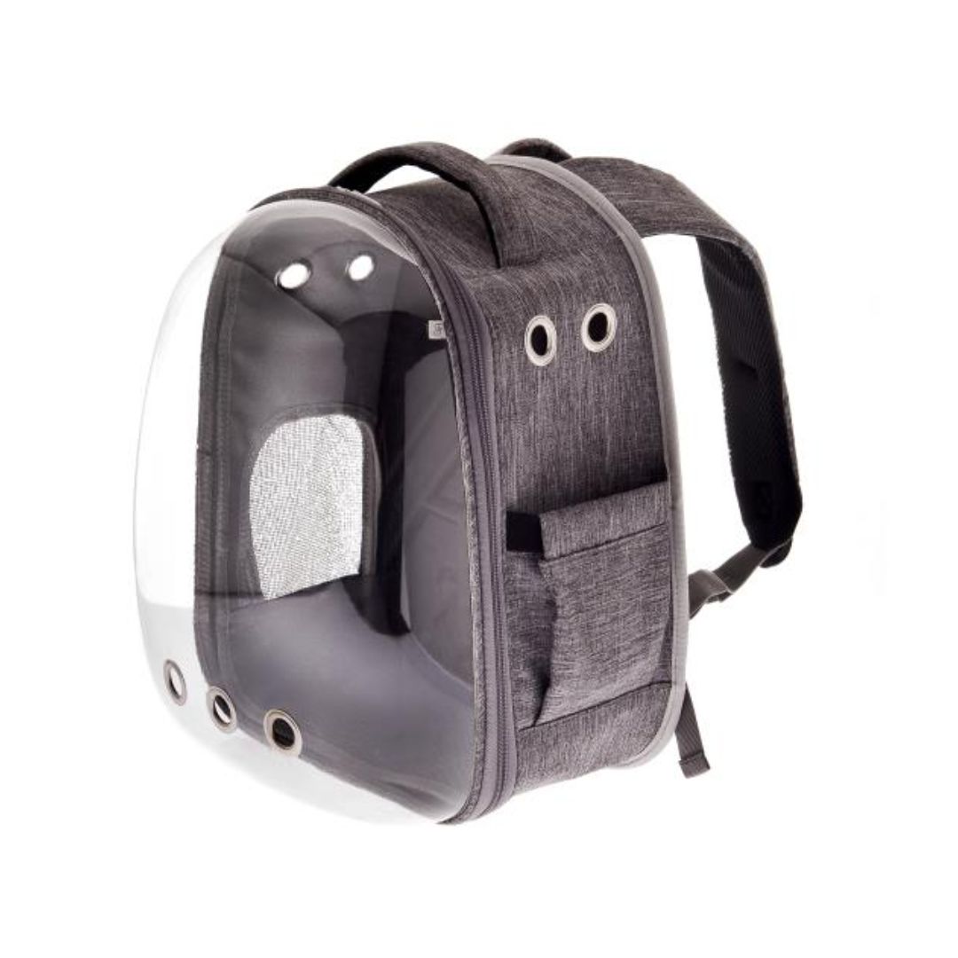 Ferribiella Supreme Eva е стилски и практичен ранец-транспортер за кучиња и мачки дизајниран да обезбеди удобно, безбедно и визуелно пријатно патување за твојот миленик. Овој модел е идеален за секојдневни прошетки, кратки патувања, посети кај ветеринар или јавен превоз.Овој модел има прозрачен прозорец (window) на предната страна што овозможува миленикот да гледа надвор додека е смирен и спокоен. Просторен и практичен – дизајниран за мали кучиња и мачки до околу 10 kg тежина.Едноставен за влегување и излегување на миленикот преку комплетно отворање на предната страна.