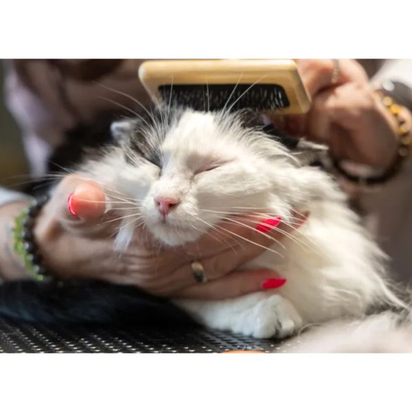 Оваа четка од бамбус е совршена за вашиот крзнен пријател! Металните иглички со пластични врвови ги одмотуваат јазлите без болно влечење. Тие исто така ја масираат кожата и ја поттикнуваат циркулацијата на крвта.