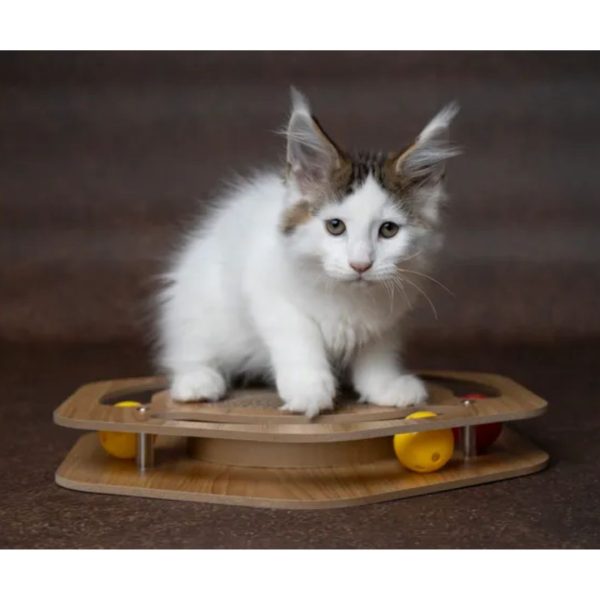 Оваа шестоаголна играчка Densi е совршена за вашата мачка! Направена од MDF и картон, со 3 топчиња што ѕвечкаат и кесичка со мачкина трева. Вашата мачка нема да може да одолее на својот природен инстинкт за лов! Играчка која ја буди менталната активност кај твоето маче, затоа предизвикај го!
