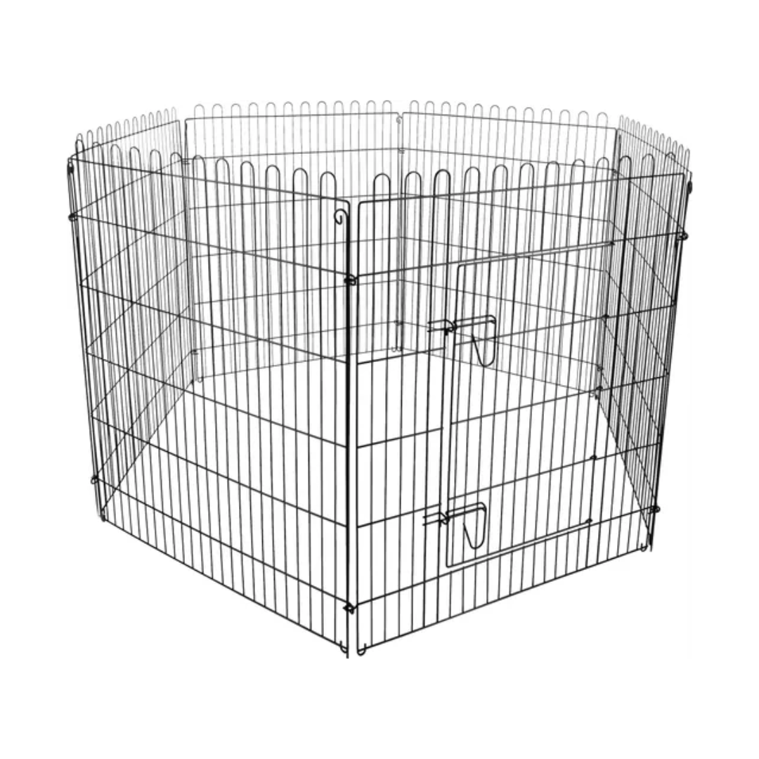 Метална ограда за миленици која им дава само лимитиран простор на милениците да се движат. Најчесто се препорачува за нови легла или пак додека миленикот оздравува и е под терапија. Составена од 6 метални профили кои се спојуваат и може да се користат како Ви одговара според простор. Може да споите 4,5 или 6 делови, само едниот панел има мала врата во средината за полесен пристап. По потреба може да се спакува и да се пренесе. Лесно за чистење, монтирање и одржување.