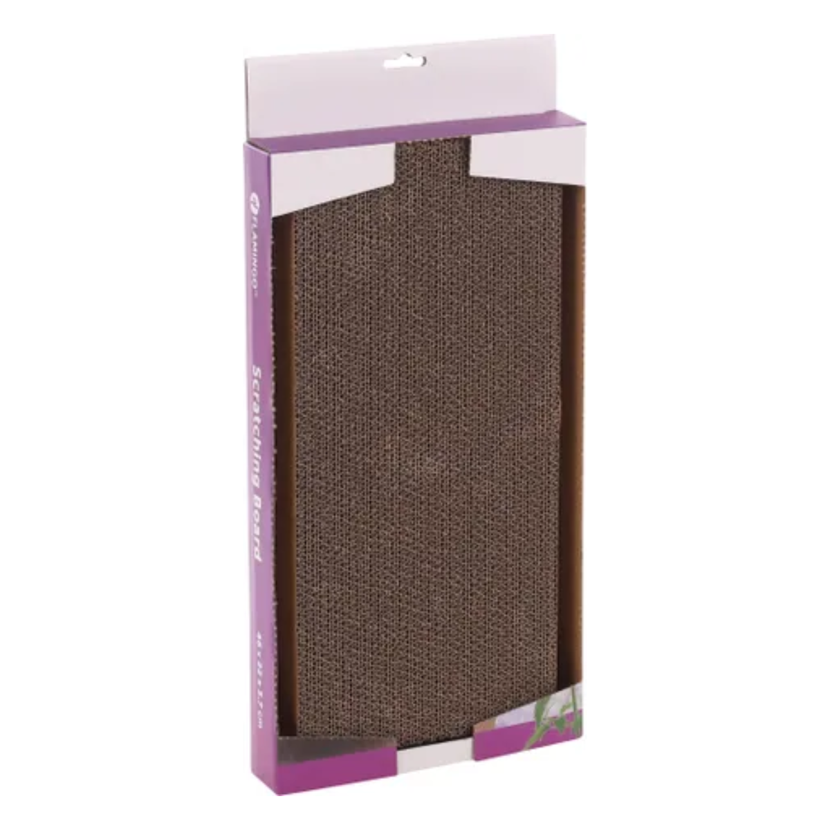 Картонска гребалка со пакетче катнип. Се потпира или закачува на ѕид.