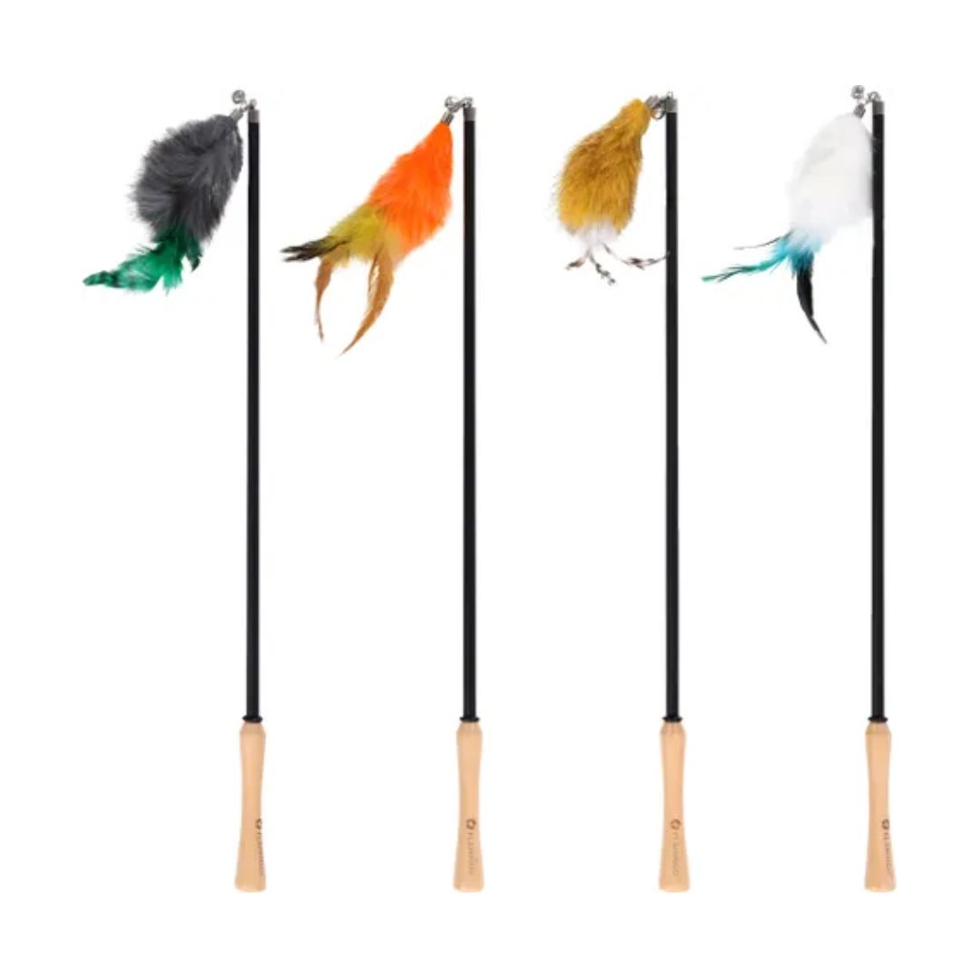 Почестете ја вашата мачка со овој телескопски рибарски стап! Комплет со плишана играчка, ѕвонче што ѕвони и пердуви за часови играње. Ќе ги разбуди ловечките инстинкти на вашиот крзнен пријател.