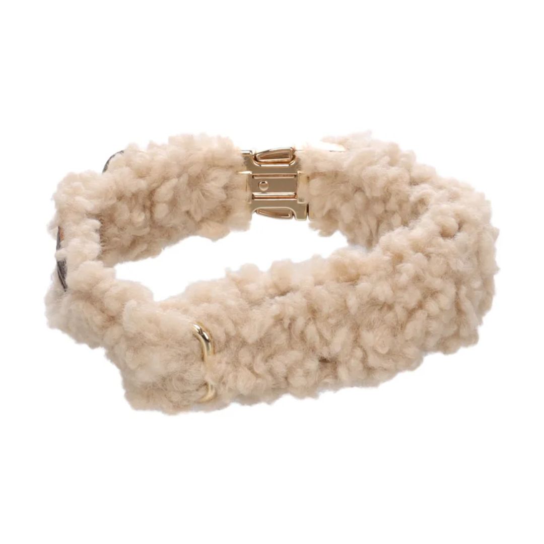 Вашиот крзнен пријател заслужува само најдобро, нели? Со оваа супер мека беж огрлица Пуки, вашето куче не само што ќе изгледа стилски, туку и ќе се движи удобно. Континуирано прилагодливата лента со златни акценти совршено ја надополнува сликата. За стилски прошетки!