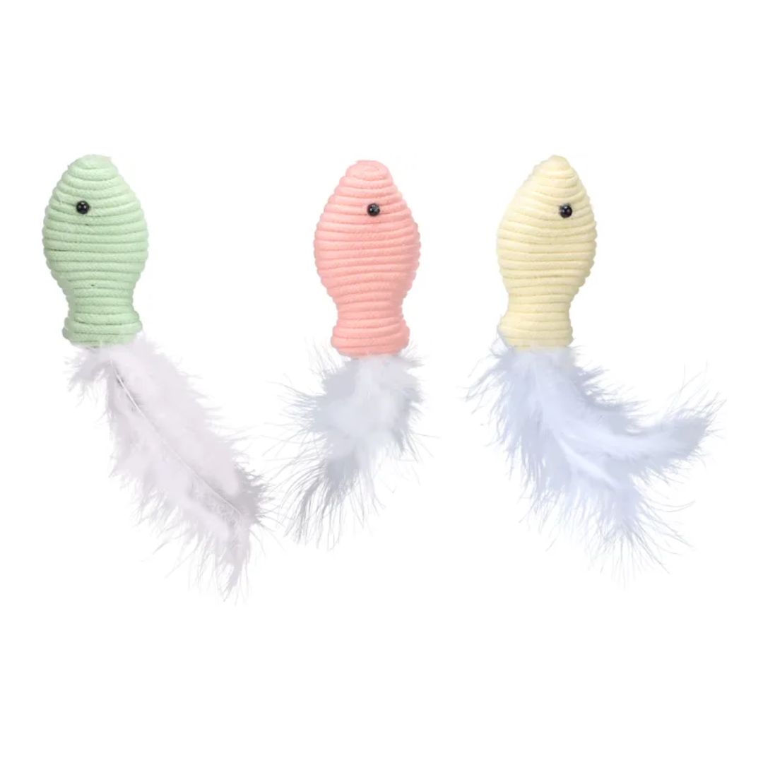 Погледнете ја оваа слатка играчка за мачки: риба полна со изненадувања! Комплетна со звук на шушкање, катнип и пердуви за часови играње. Дозволете вашата мачка да го ослободи својот внатрешен ловец со оваа шарена и неодолива играчка! Достапна во повеќе бои!