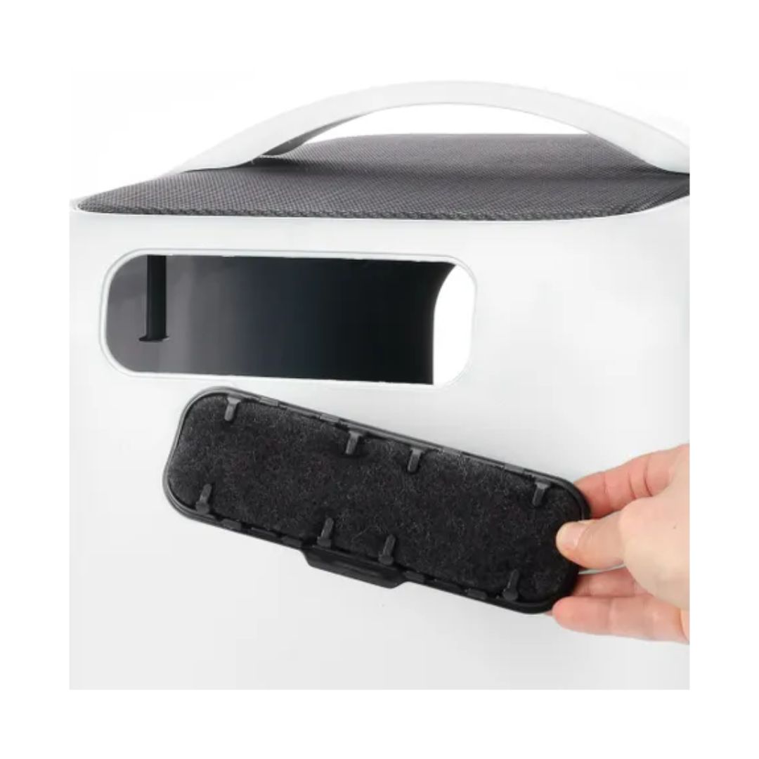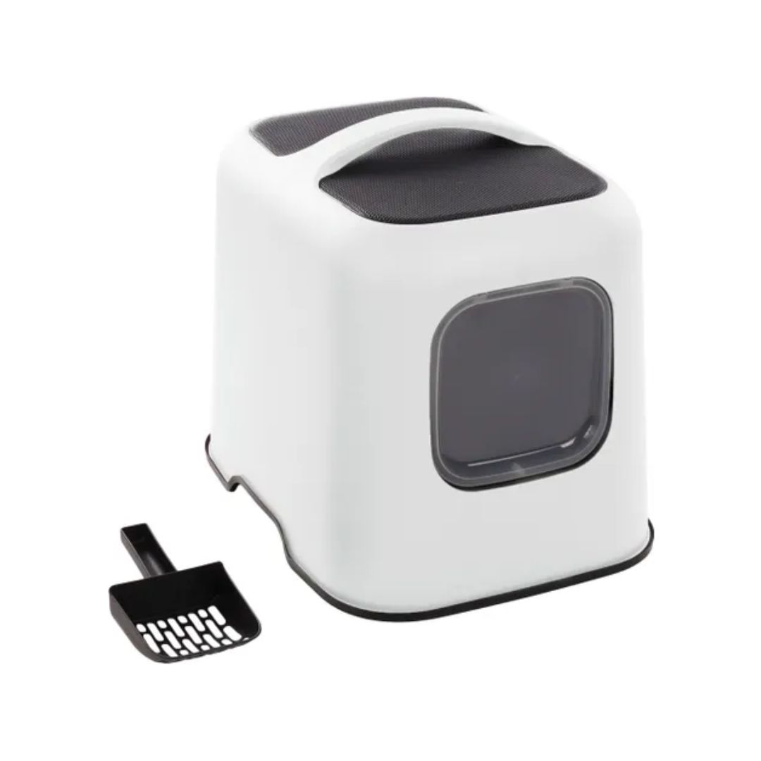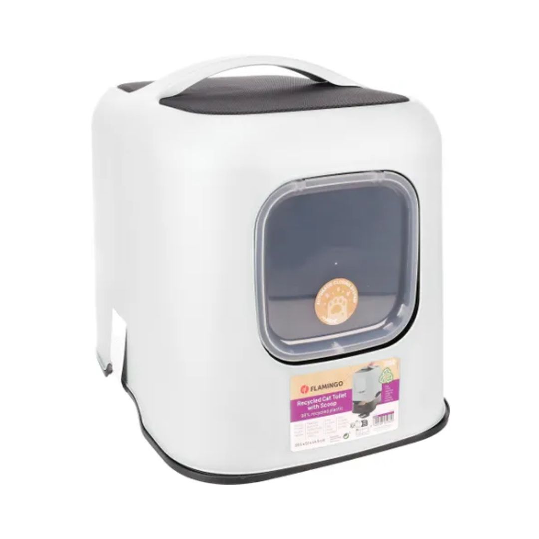 Нов модерен модел на тоалет за мачиња кој идеално се вкопува во секој ентериер. Горниот капак го покрива целосно тоалетот и не се гледа внатрешната половина каде се става песокот, па речиси е невозможно да се истури песок надвор од тоалетот. Едноставно се вади и чистењето на песокот внатре е едноставно. Со врата која е лесна за влегување и сама се затвара.
