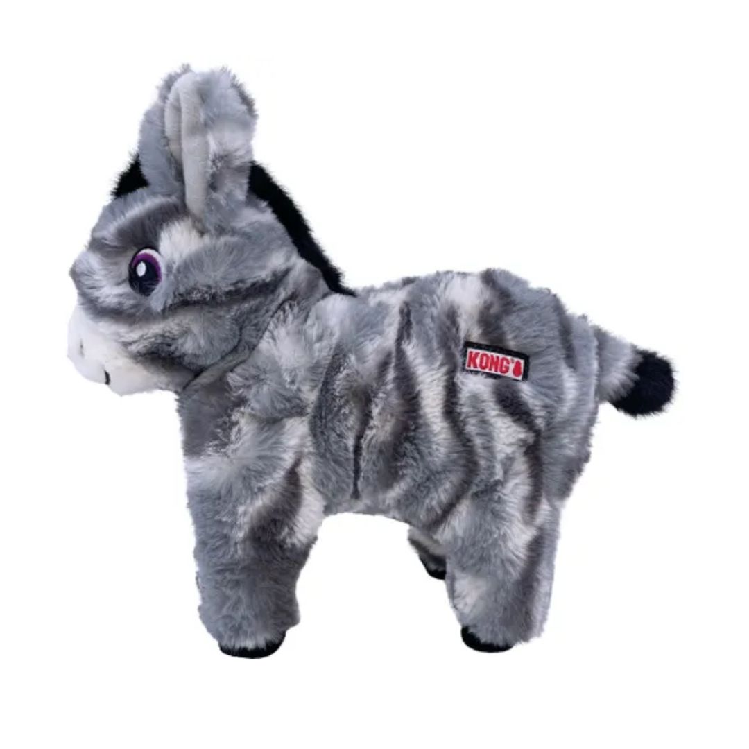 Оваа слатка сива играчка е совршена за вашиот крзнен пријател! Магарето Kong Low Stuff Stripes е направено од мек плишан материјал и има свирка за дополнителна забава. Почестете го вашето милениче со часови играње со овој пресладок придружник!
