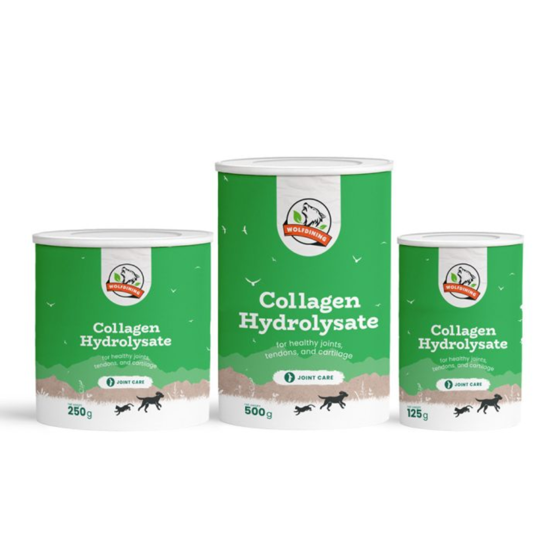 Колаген е протеин кој се наоѓа природно во сврзно ткиво, зглобови, лигаменти, коски, кожата и крзното. Како што домашните миленици стареат, или пак се многу активни, количината и квалитетот на колаген што го произведуваат се намалува. Овој хидролизиран колаген е обработен така што е лесно сварлив и брзо се апсорбира — го поддржува телото да произведува здрава коскена срцевина, да ја одржува флексибилноста на зглобовите и да го подобри изгледот и состојбата на кожата и крзното.